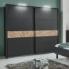 Ontdek de Rotterdam Zweefdeurkast, nu beschikbaar in twee royale afmetingen voor ultieme opslagmogelijkheden. Kies uit de vertrouwde maat van 225x208x65 cm (BxHxD) of ga voor de uitgebreide versie van 270x208x65 cm (BxHxD). Deze kasten zijn meesterwerken van ruimte-efficiëntie en modern design, met een verfijnde grafietkleurige afwerking en een centraal eiken lamelle folieaccent.