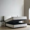 Het opbergbed Ruby is een bed met een luxe hoofdbord dat is voorzien van een luxe afwerking. Het hoofdbord van het bed heeft een zachte stoffering. Het design van het hoofdbord is zorgvuldig gekozen om het bed een chique en eigentijdse uitstraling te geven. Het bed wordt geleverd met een luxe matras dat zeer comfortabel is om op te slapen. Het matras is gemaakt van hoogwaardig materiaal en biedt uitstekende ondersteuning aan het lichaam. Al met al is het opbergbed Ruby een perfecte combinatie van stijl en functionaliteit, waardoor het een geweldige keuze is voor mensen die op zoek zijn naar een modern en praktisch bed.
