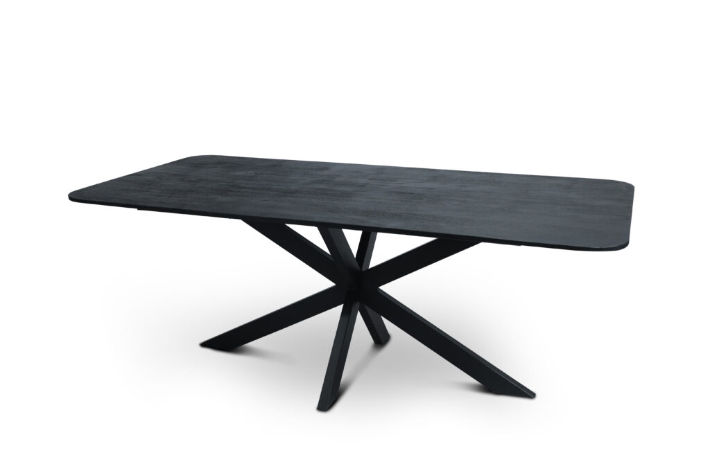 Geef jouw eetkamer een stijlvolle en warme uitstraling met de Eettafel Firenze Zwart met afgeronde rechthoekige vorm. Deze eettafel combineert het natuurlijke karakter van massief mangohout met een stoere zwarte spinpoot van staal. De afgeronde hoeken zorgen voor een zachtere, elegante look en maken de tafel extra vriendelijk en praktisch in gebruik. Perfect passend binnen zowel moderne, industriële als eigentijdse interieurs.